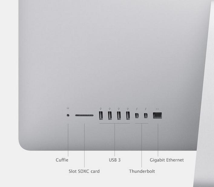 Tra le connessioni troviamo quello per le cuffie, slot per memorie SDXC, USB 3.0, Thunderbolt e Gigabit Ethernet